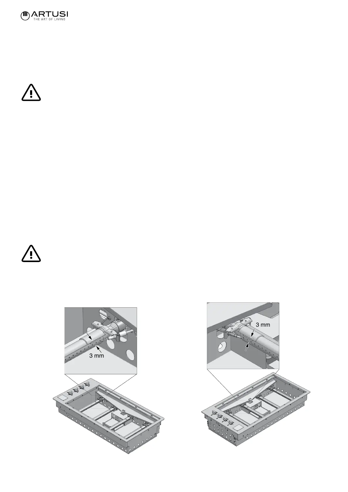 There must be 3 mm of space between the electrode and the burners (see drawing on the next page). If the unit is exposed to the