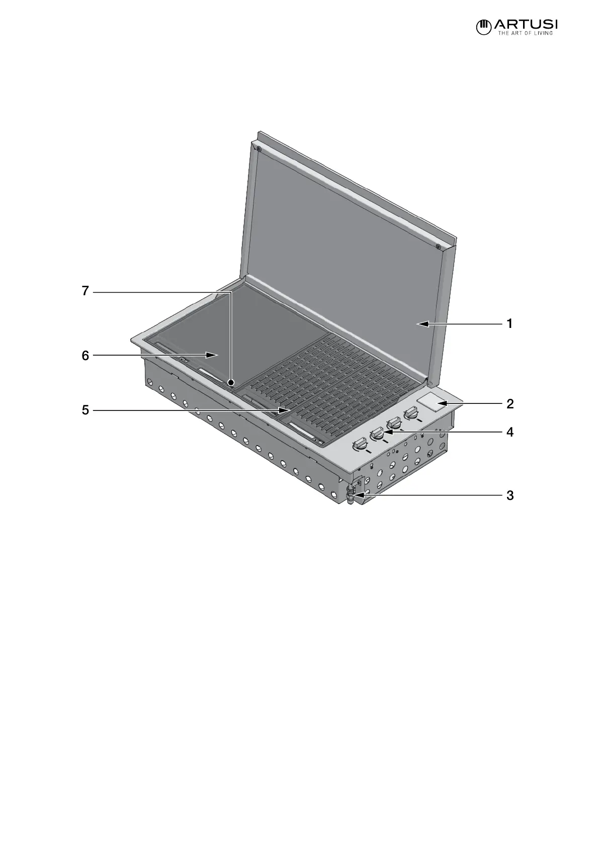 8. Flame diffusers (2 pcs.) located under the grills (not shown)