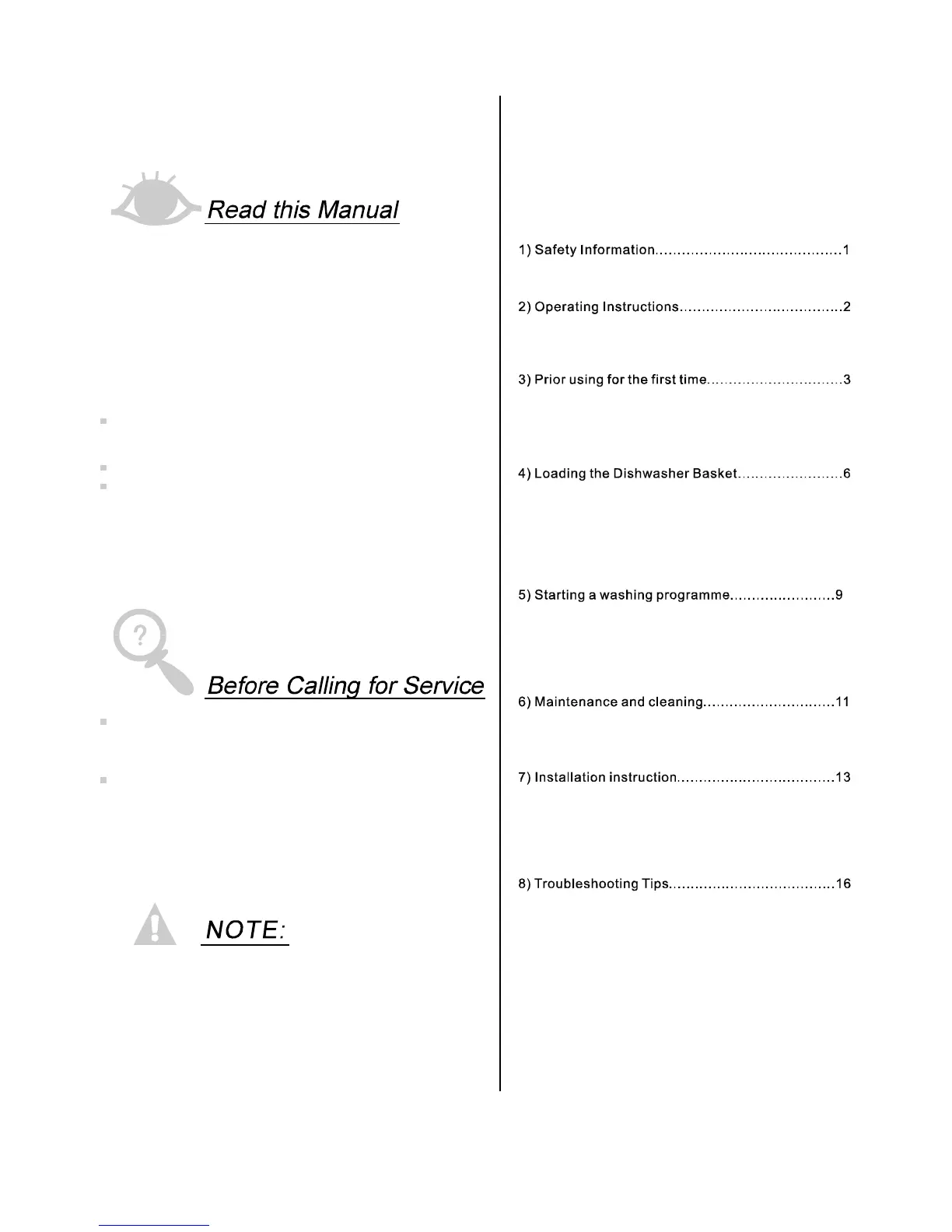 Caring for the Di shwasher. .... ............... . ... ......12.