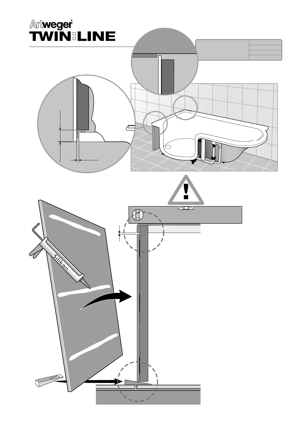 EN In case the tub is not tiled, assemble glass or synthetic