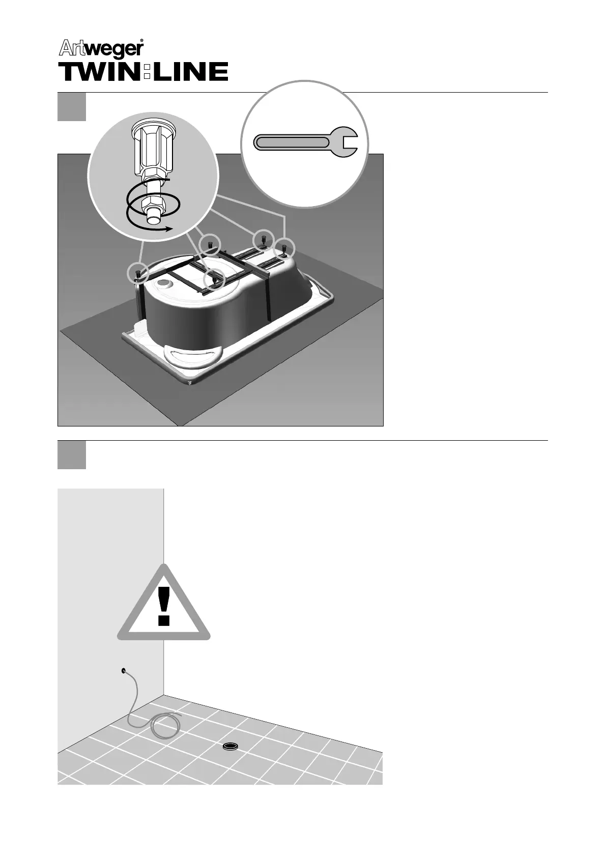 DE WICHTIG! Die Wanne nur auf fertig verfliesten Fußboden aufstellen.