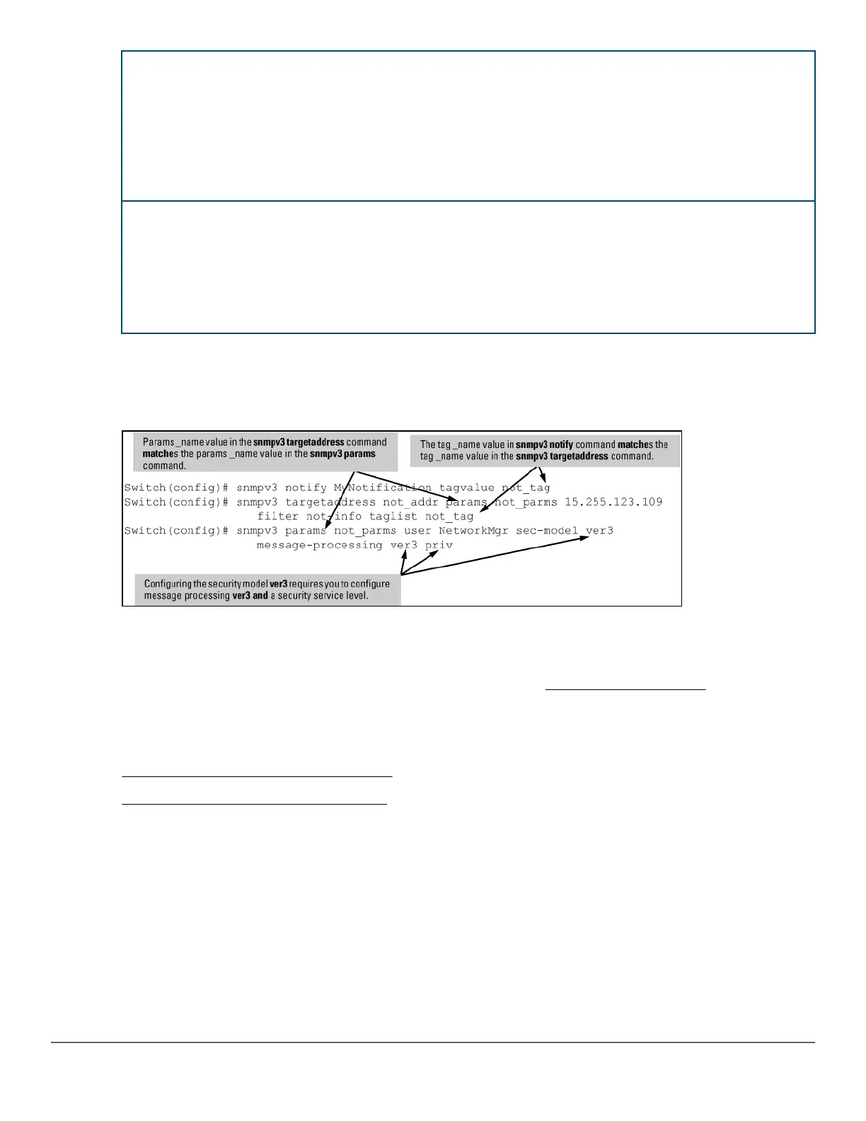 • Configuring SNMPv3 notifications (CLI) on page 158