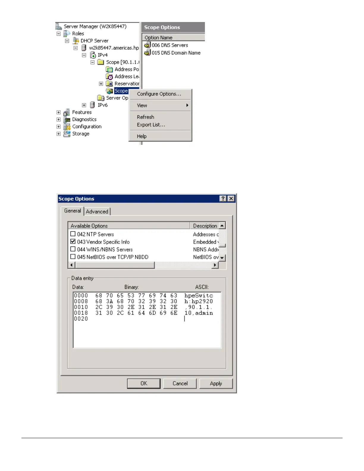 10. Under the General tab, select 043 Vendor Specific Info. The Data entry data appears. Under ASCII, enter