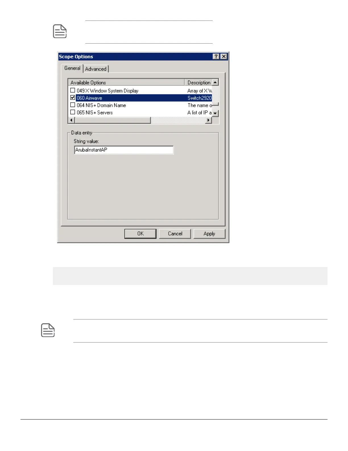 To configure a DHCP server for ZTP and AirWave, from a Windows Server 2008, do the following steps: