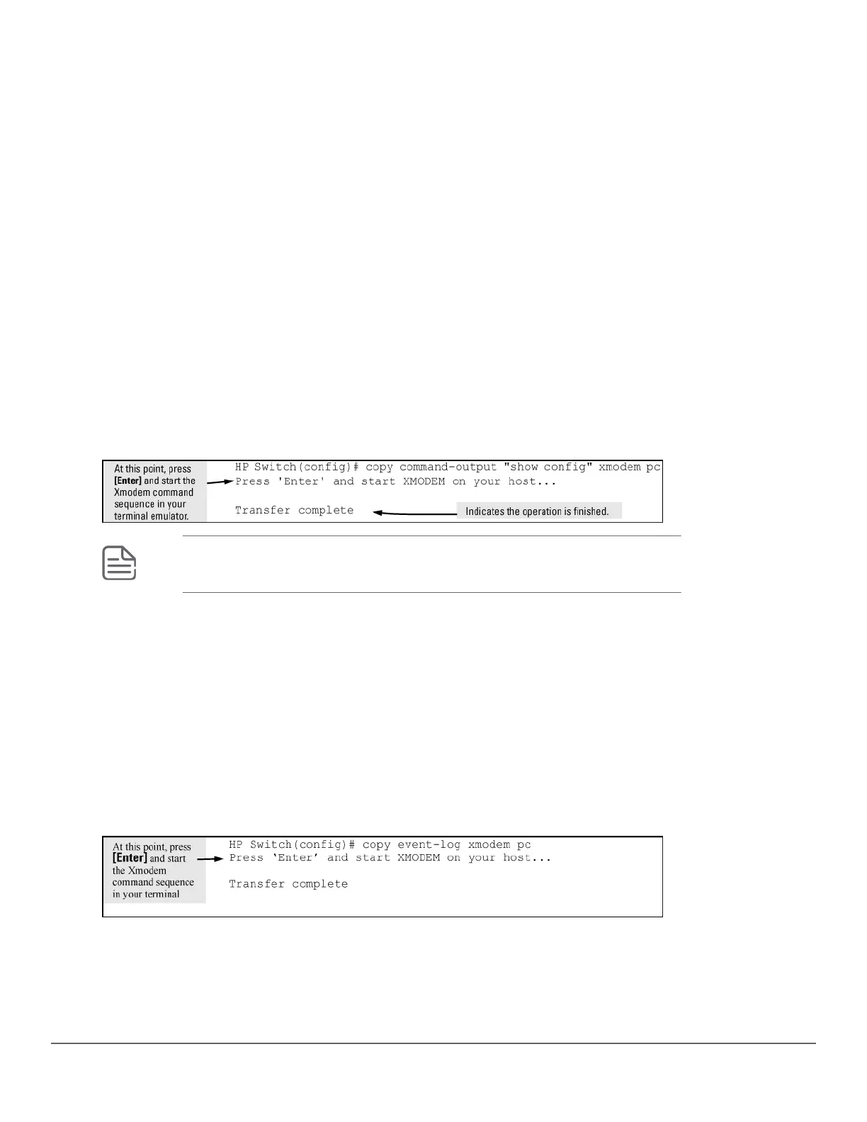 To use Xmodem to copy the output of show config to a serially connected PC: