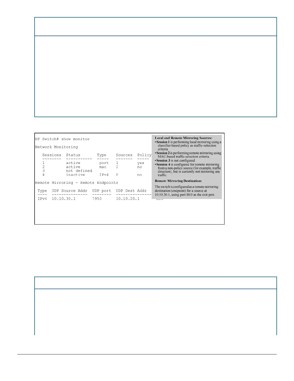 Figure 51: Displaying the currently configured mirroring sessions on the switch