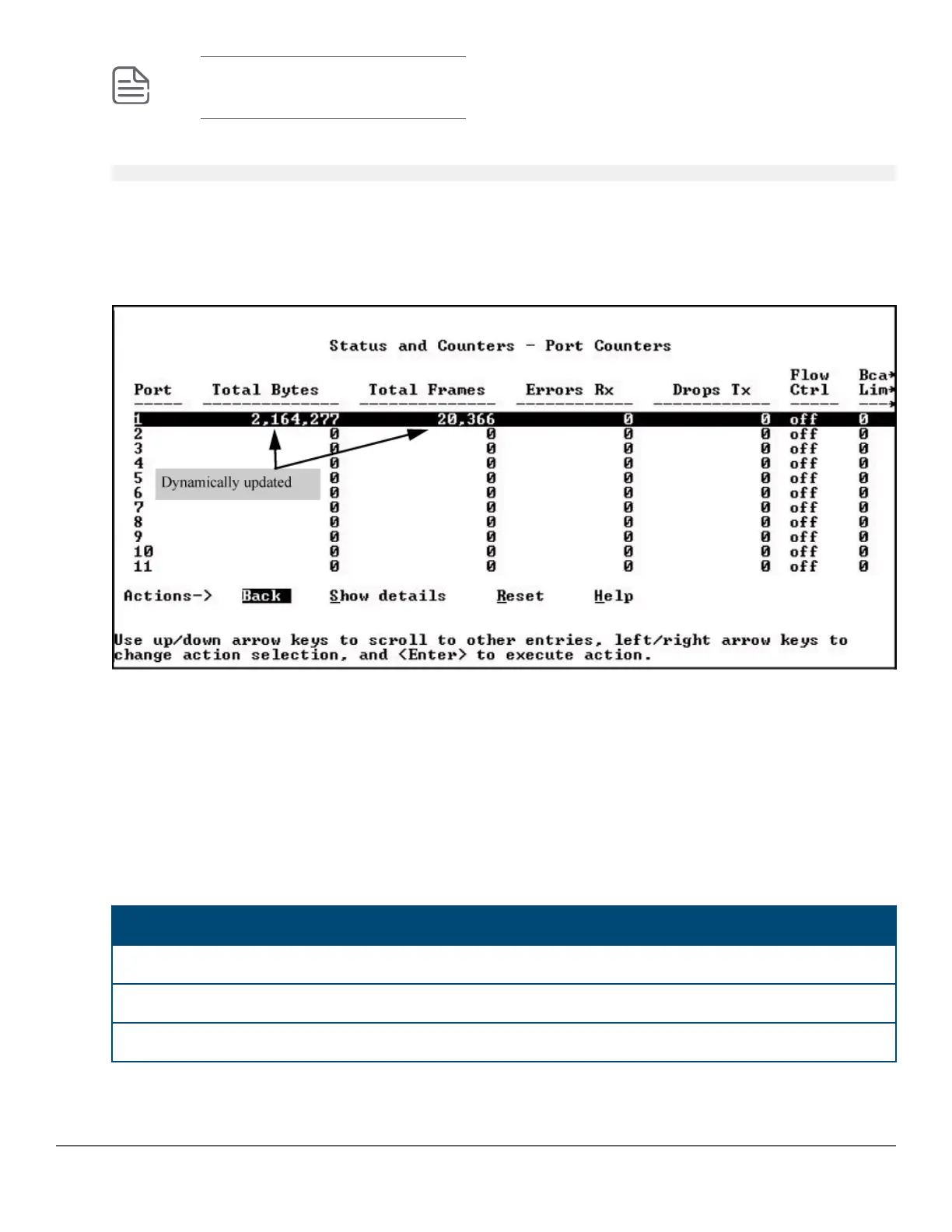 When using the display option in the CLI, the information stays on the screen and is updated every 3 seconds, as