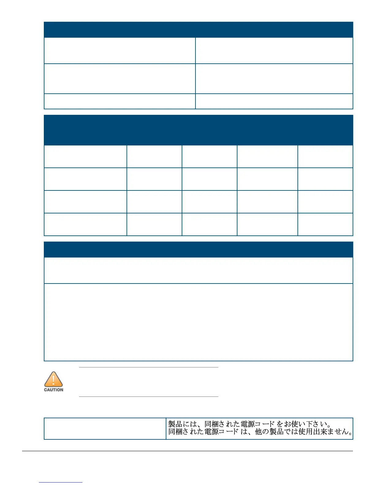 Table 1: Japan power cord warning