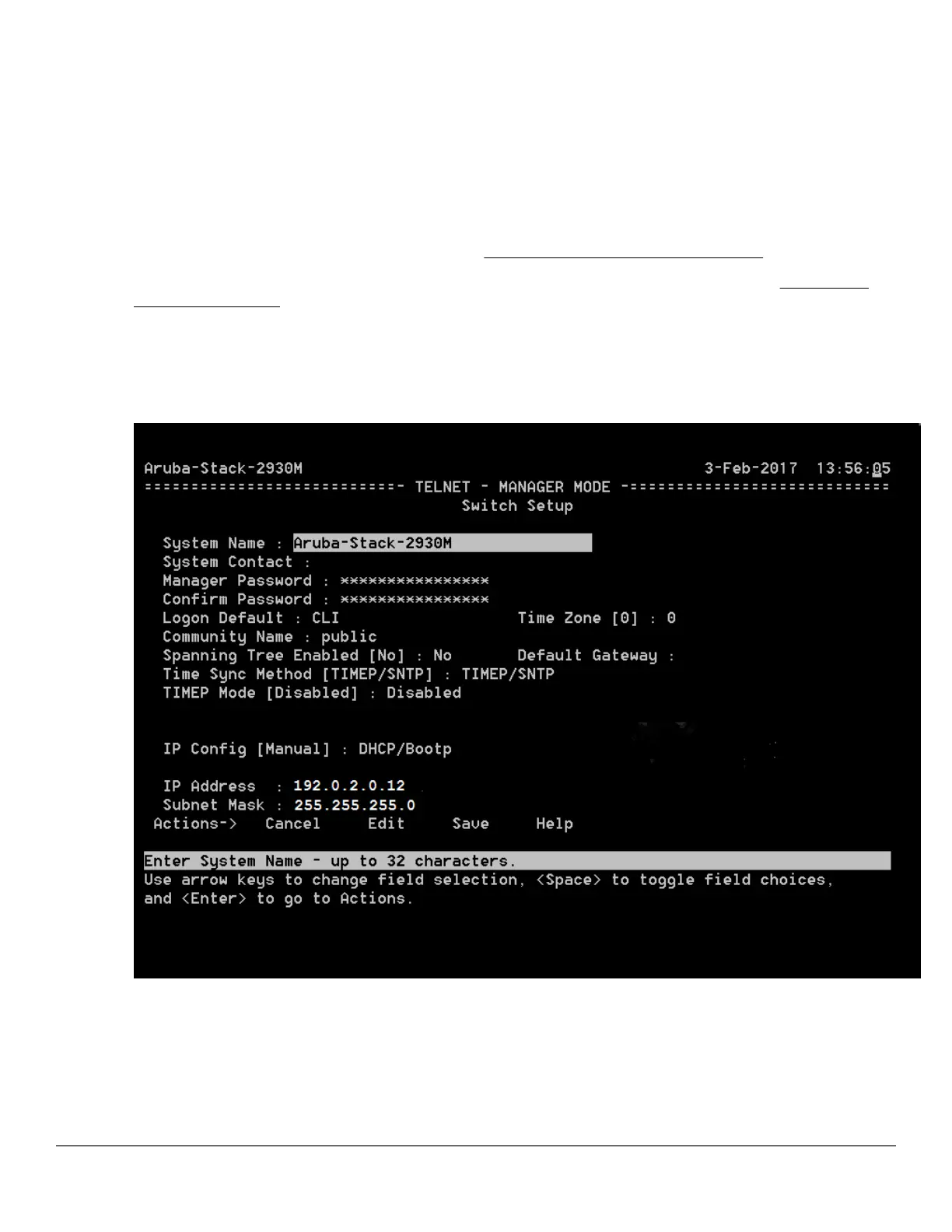 Figure 21: Example CLI switch setup screen