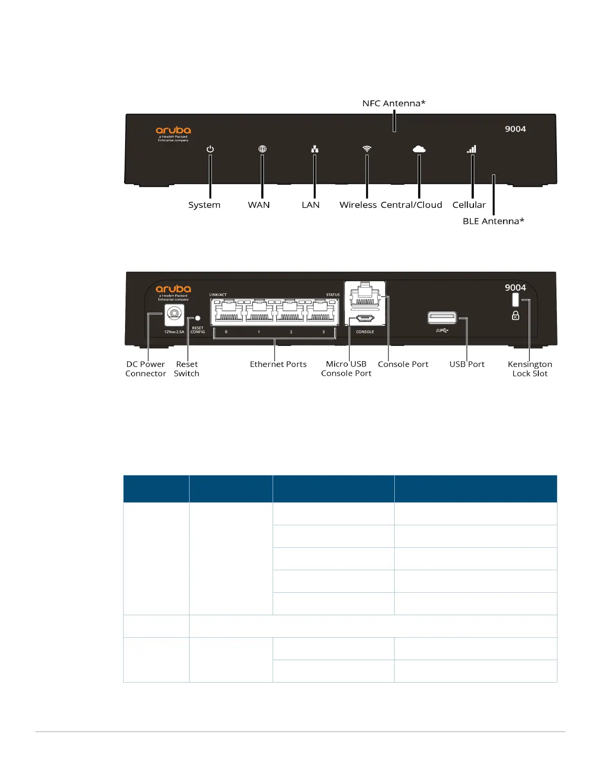 * The antenna is integrated within the hardware and is not displayed on the front panel.