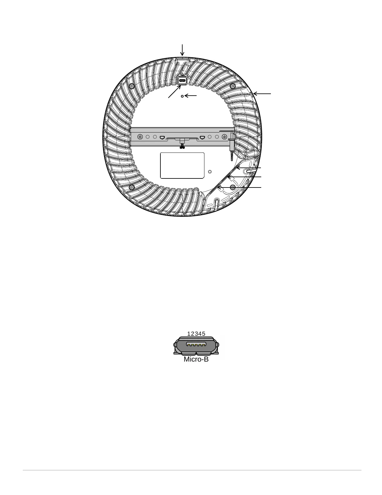 The console port is a Micro-B connector located on the back of the 630 Series. Use the proprietary AP-CBL-SERU