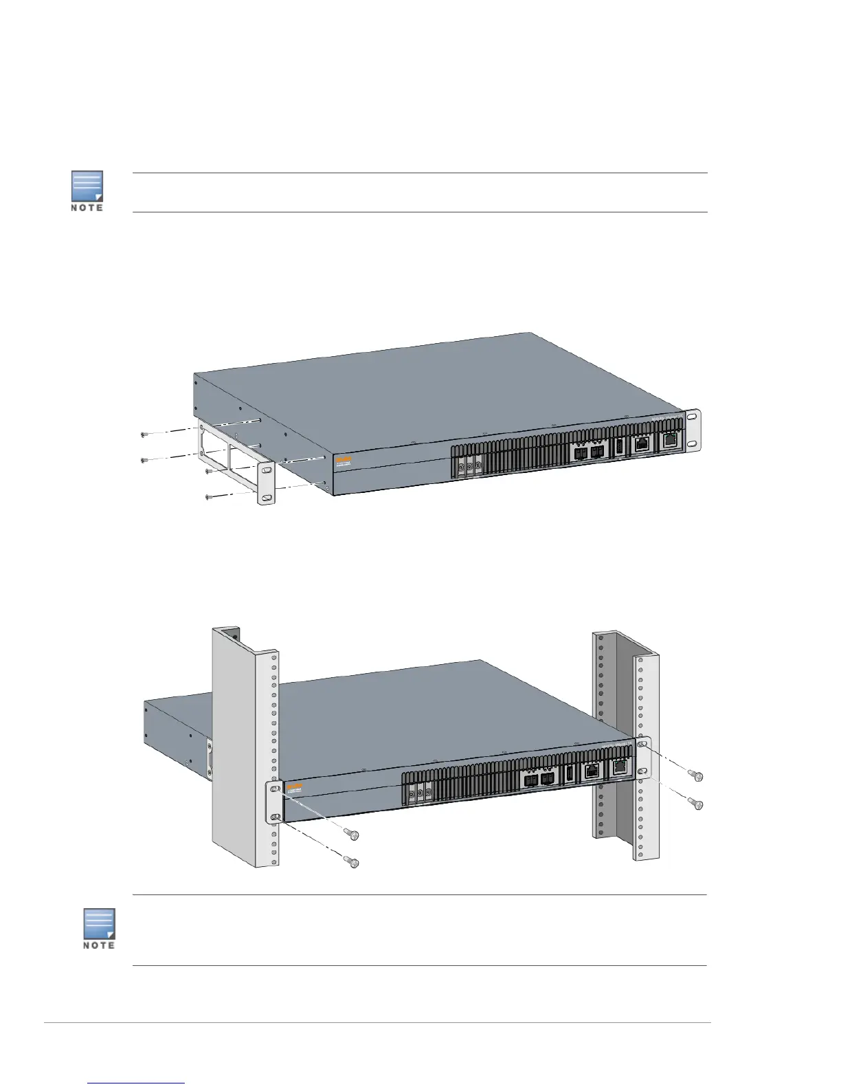 Some racks require screws that differ from those included with the Mobility Master hardware appliance.
