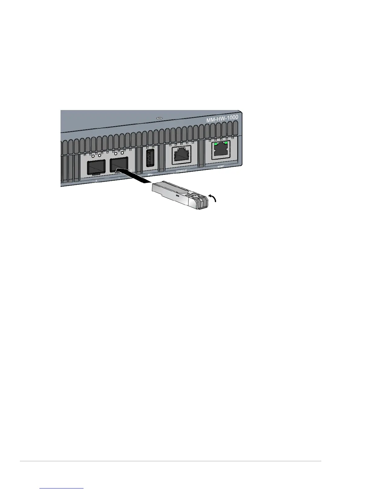 To connect an SFP module into the Mobility Master hardware appliance, slide the SFP module, top