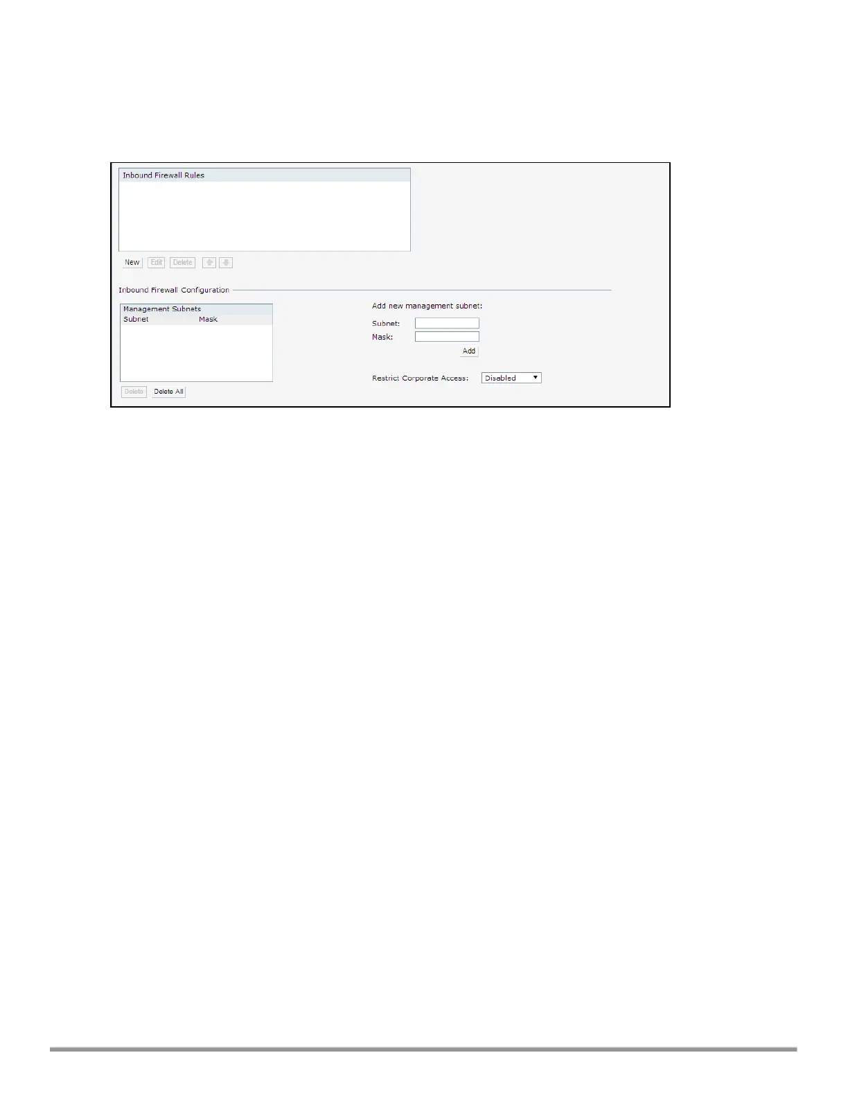 1. Navigate to Security > Inbound Firewall . The Inbound Firewall (see Figure 43) tab contents are