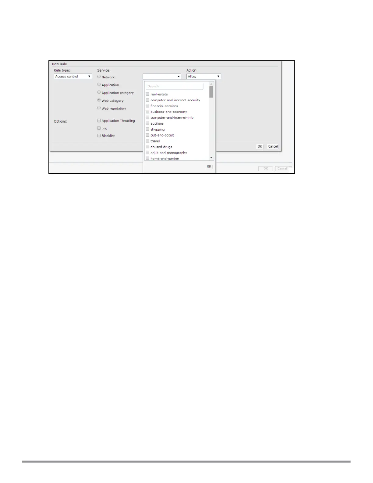 b. Select the categories to which you want to deny or allow access. You can also search for a web category