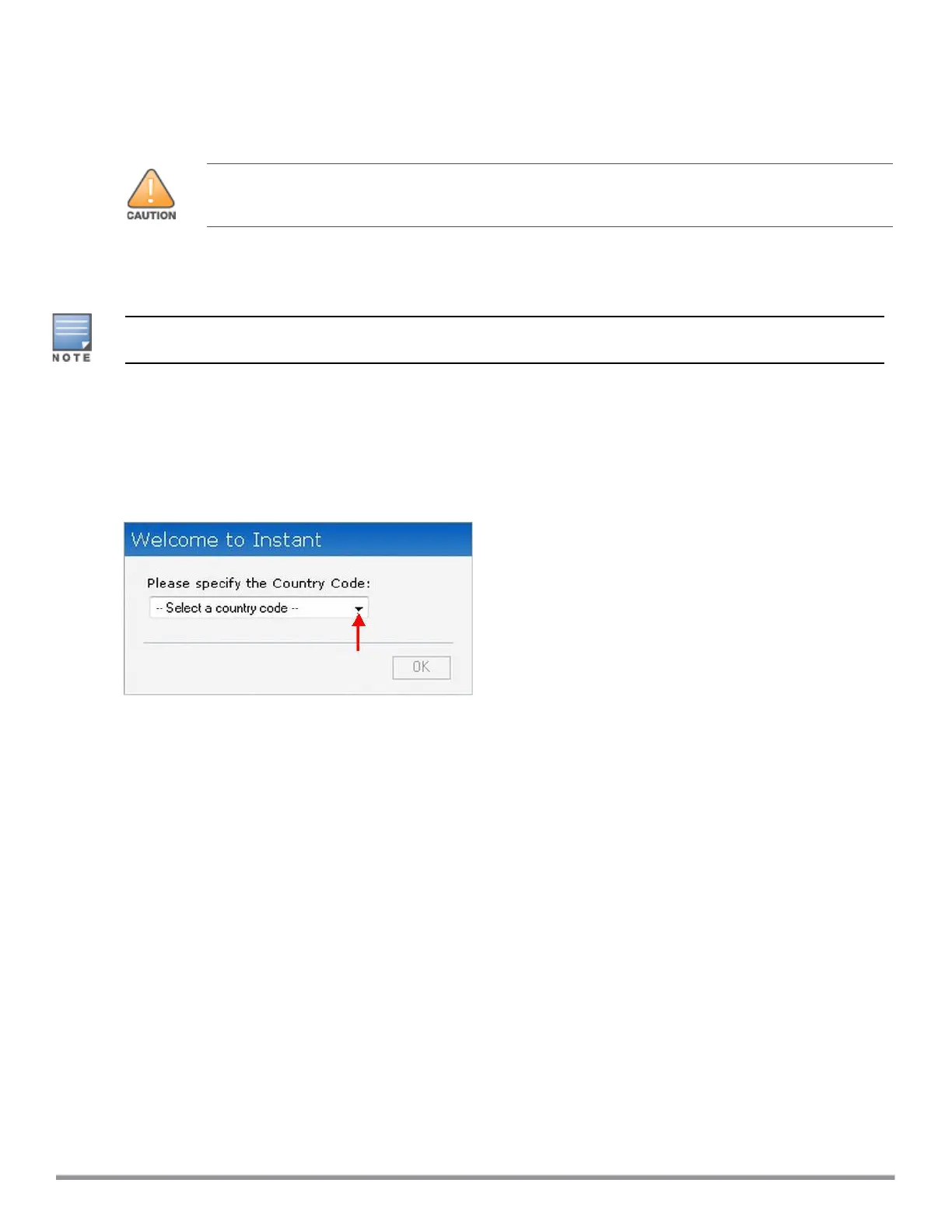 The Country Code window is displayed for the IAP-RW variants when you log in to the IAP UI for the first time.