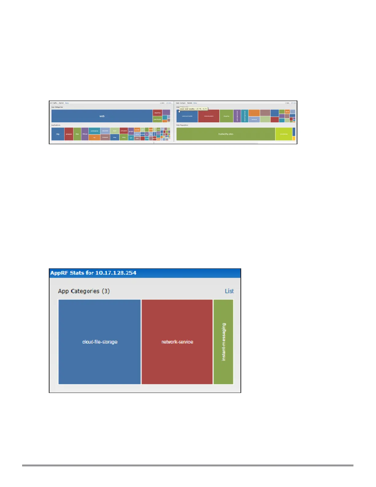 The AppRF graphs are based on Deep Packet Inspection (DPI) application and Web Policy Enforcement (WPE)