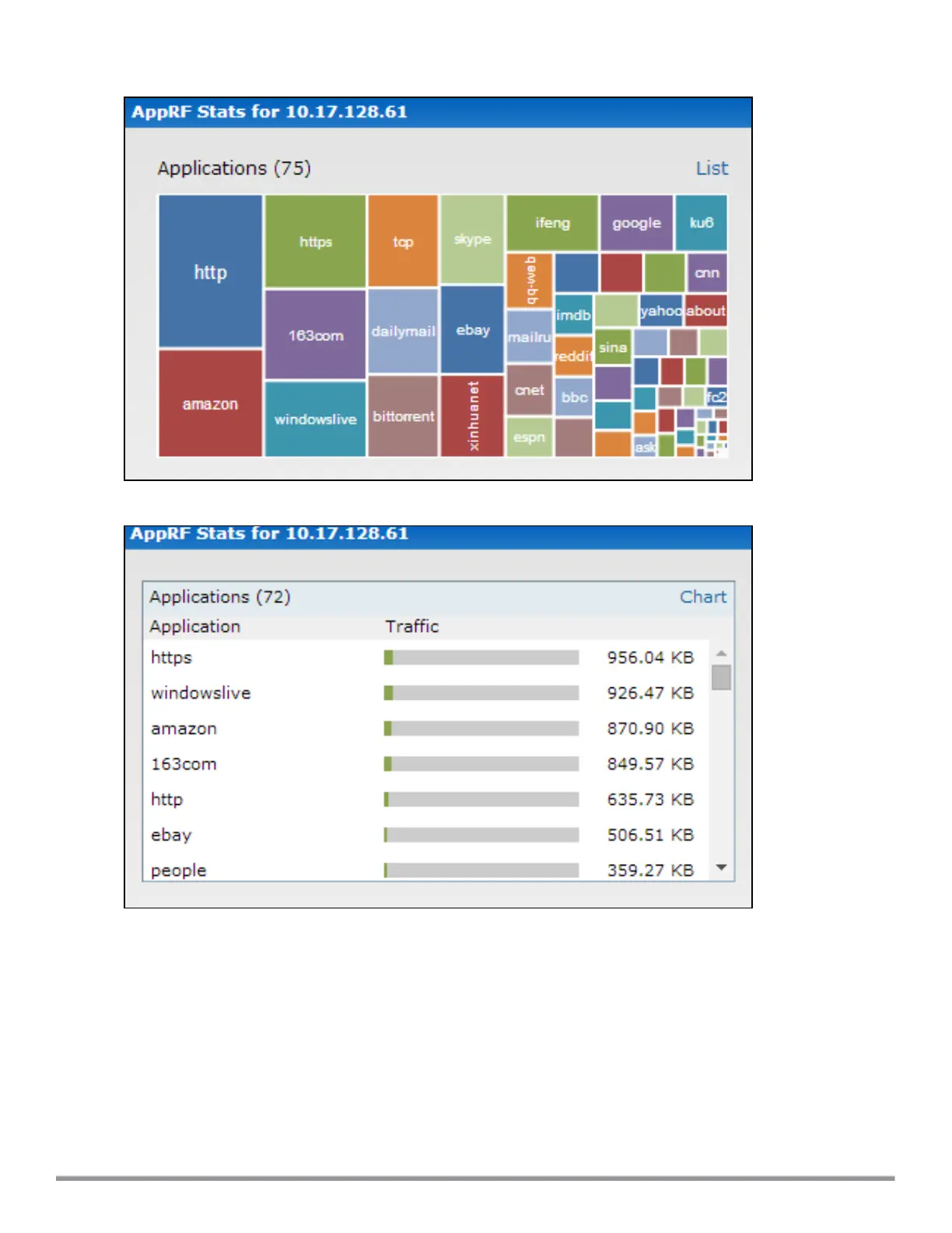 Aruba RAP-155 - Applications Chart: Client View; Applications List: Client View