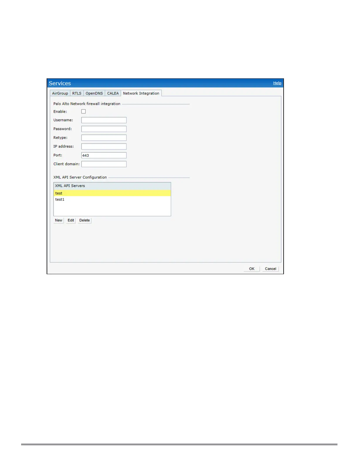 2. Click Network Integration. The PAN firewall configuration options are displayed.