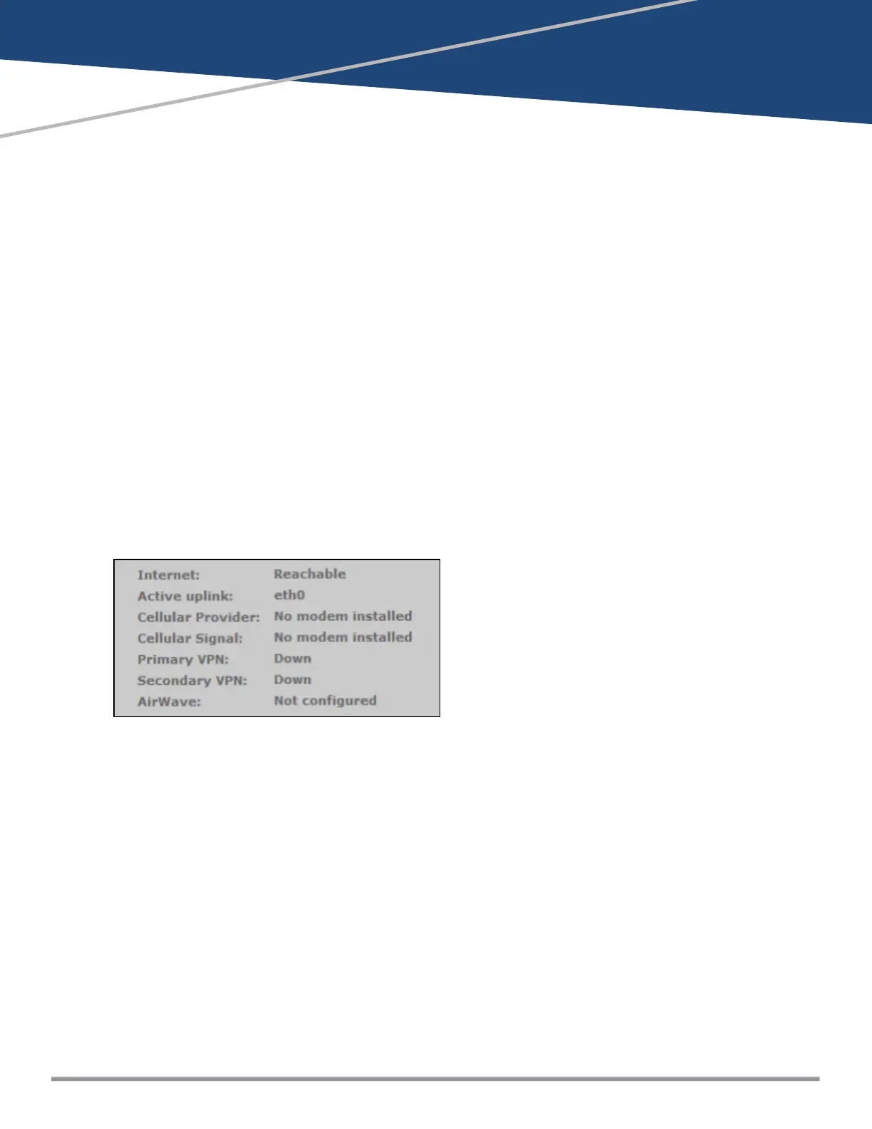 indicates the status of the Internet availability, uplink, cellular modem and signal strength, VPN, and AirWave