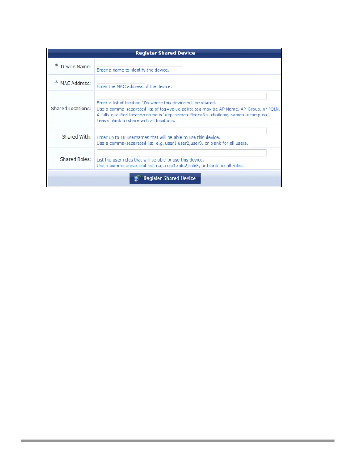 Figure 122 ClearPass Guest- Register Shared Device