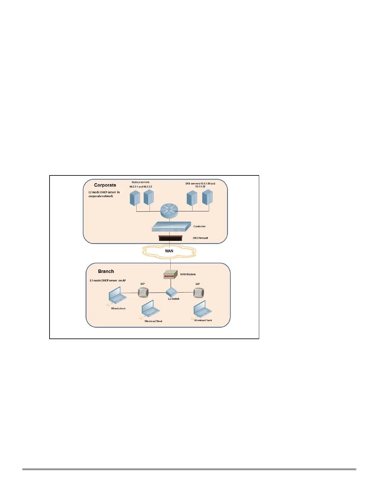 5. RADIUS server within corporate network and authentication survivability for branch survivability.