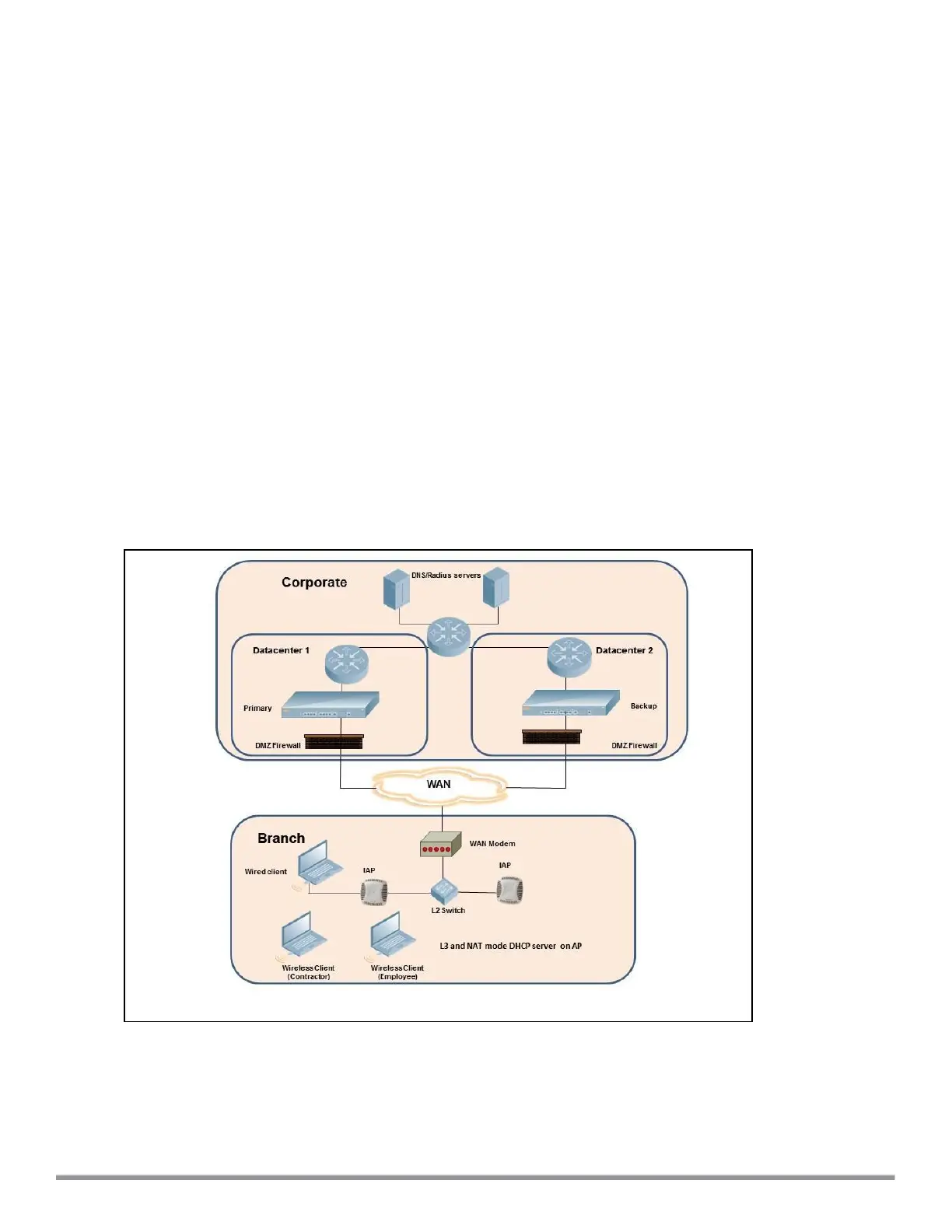 l RADIUS server within corporate network and authentication survivability enabled for branch survivability.