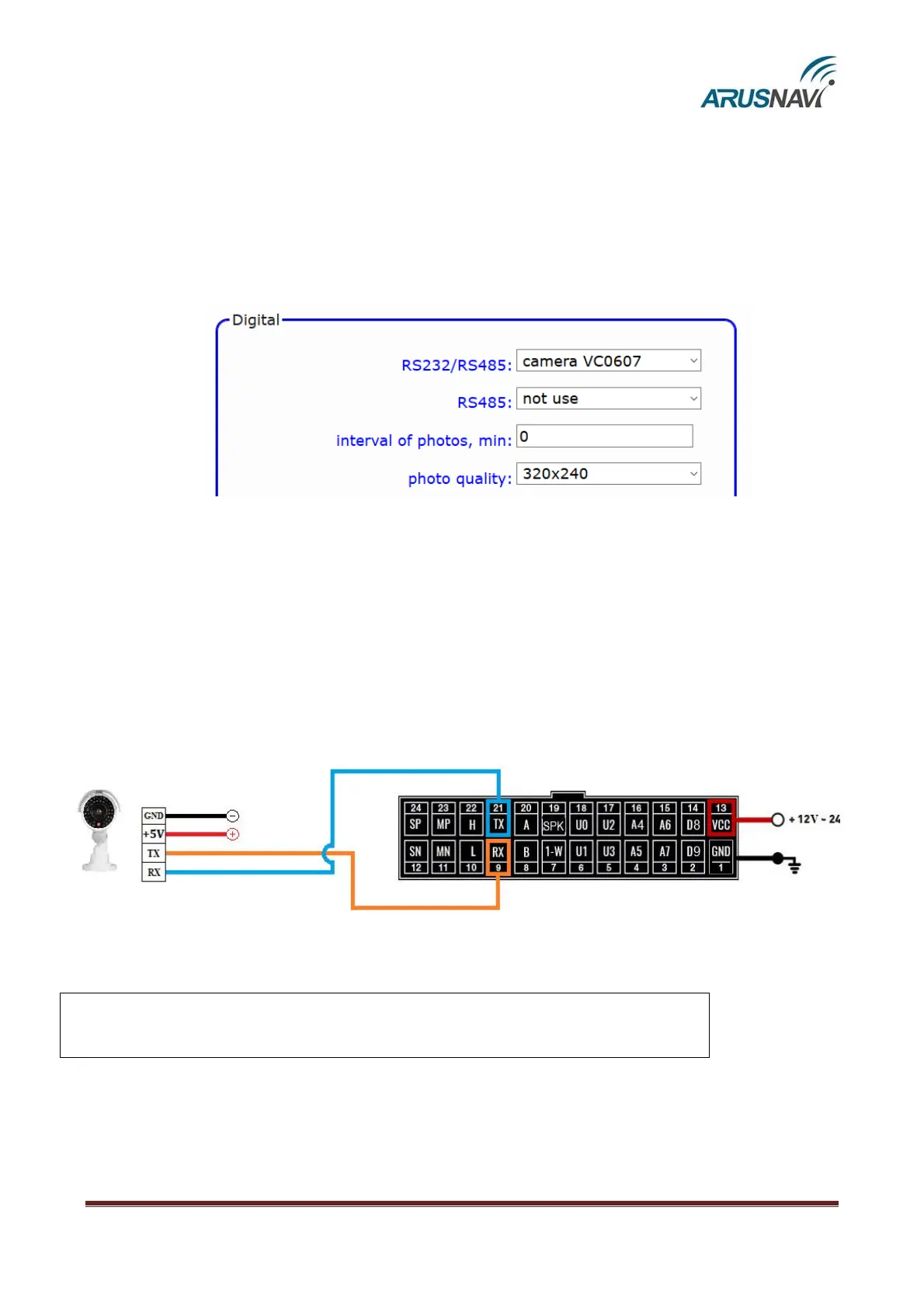 "Camera VC0607" mode – connecting the camera "VC0607" via RS-232 interface.