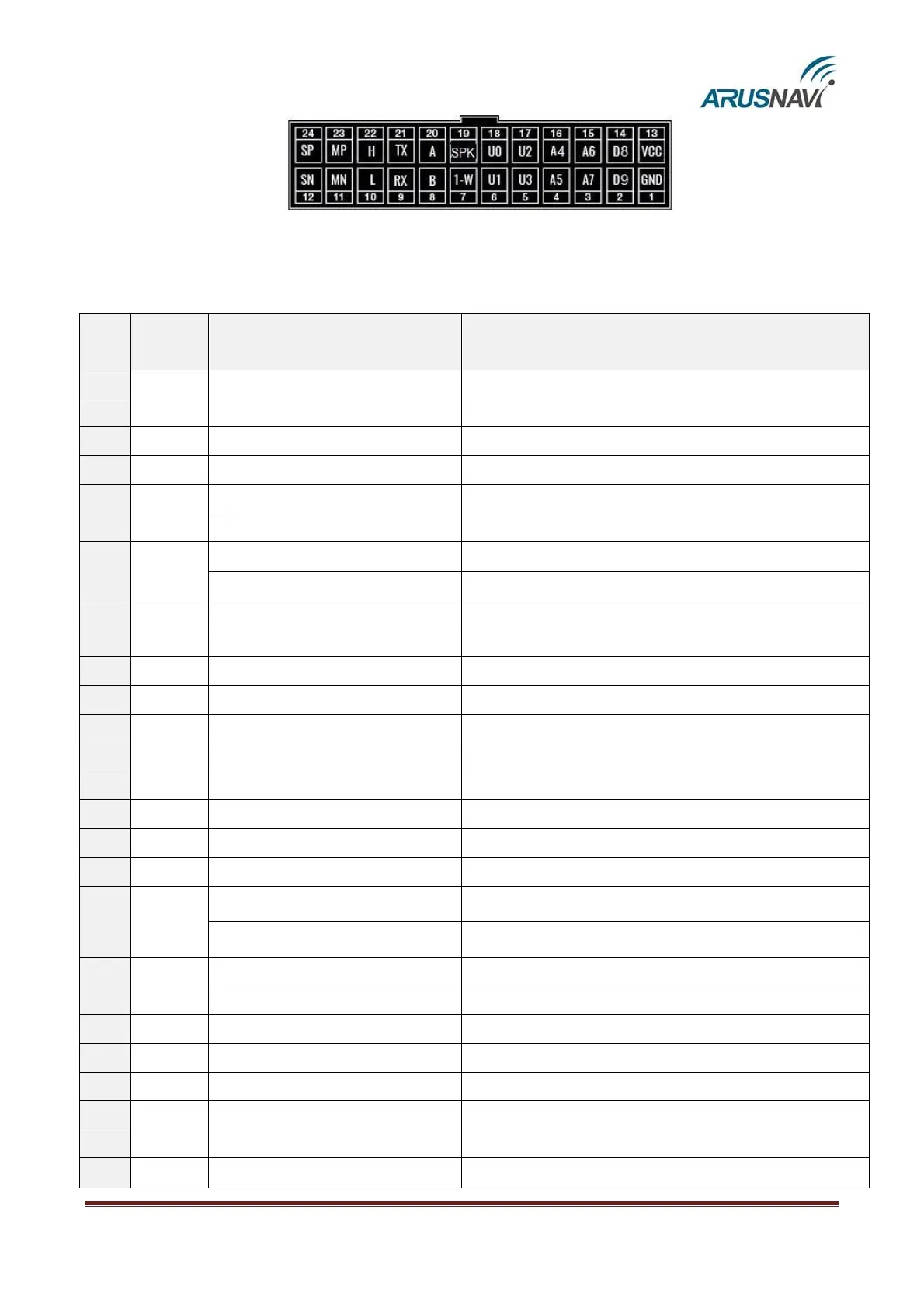 Table 2 – Pin assignment of the main connector