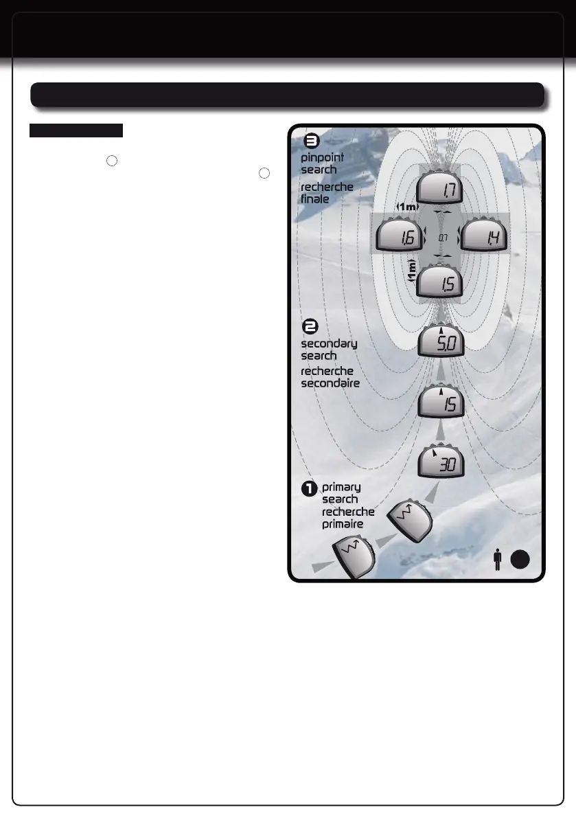 • Das ARVA-Gerät zeigt Ihnen den Stand der Suche auf