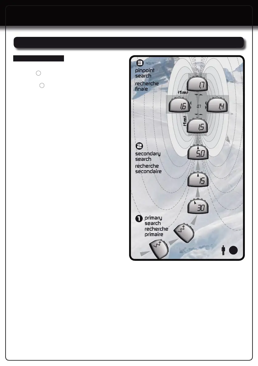 • Tenez l’ARVA horizontalement, en le pointant vers le