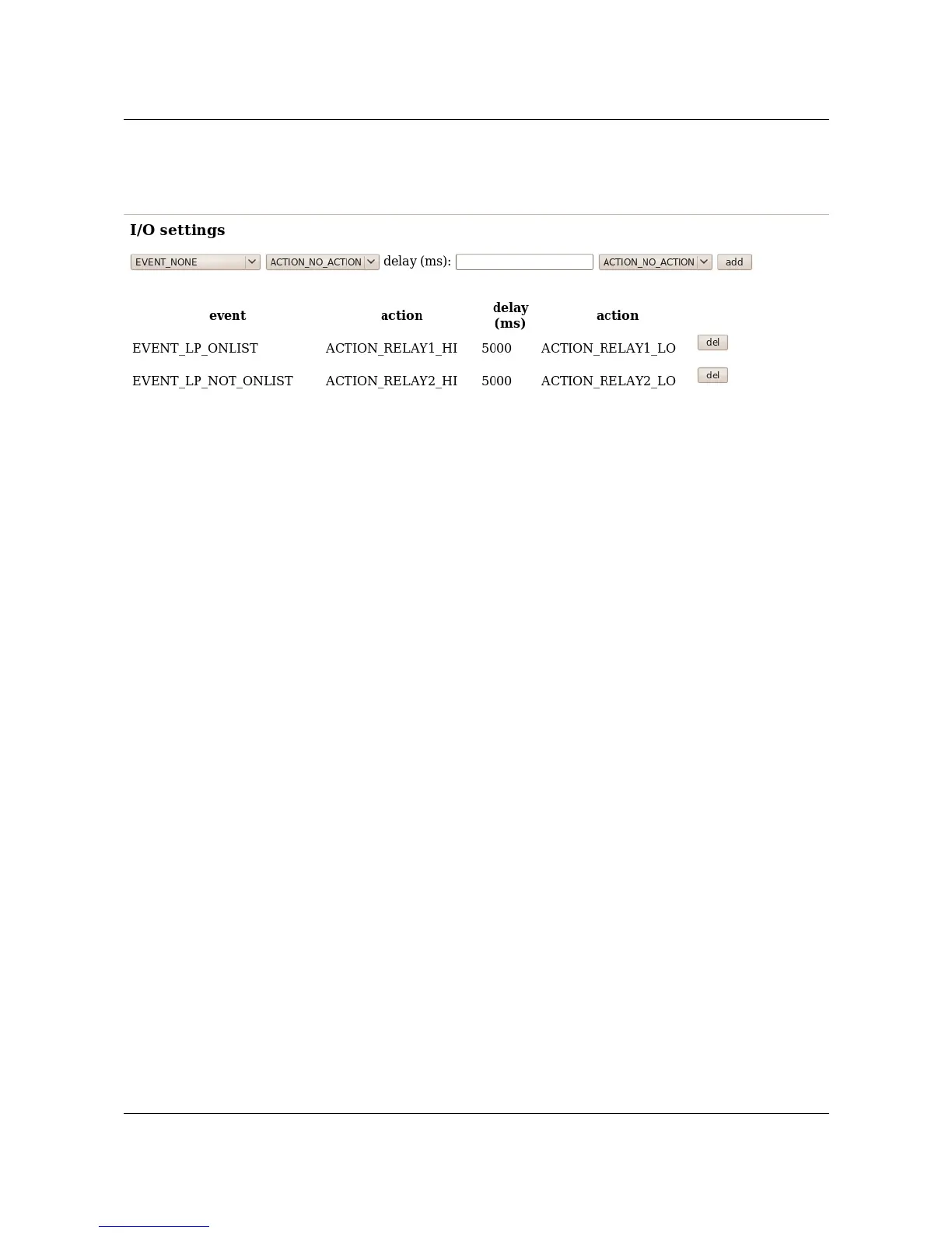 Navigate to the I/O settings page of the web service for configuring the I/O behavior.