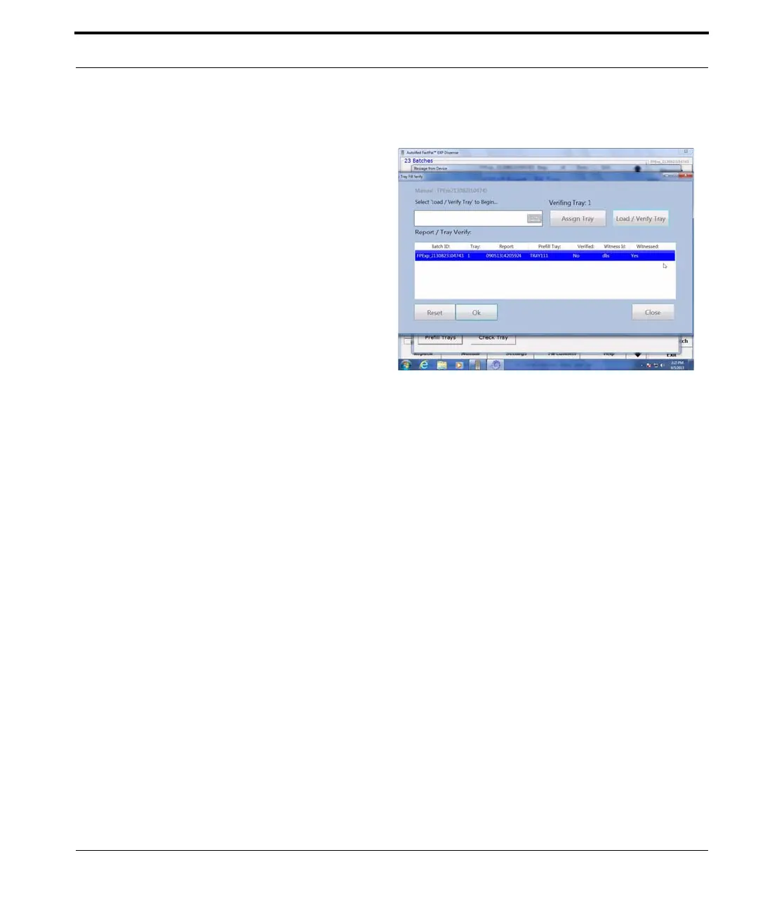 9. Click Check Tray. The Check Tray Fill window