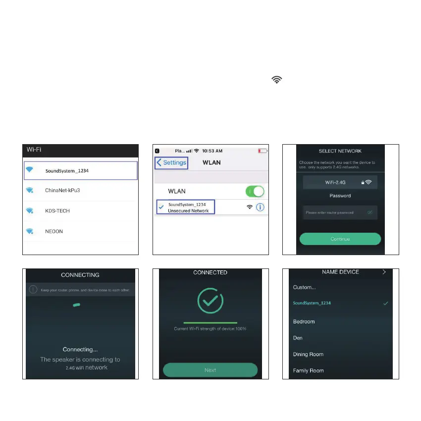 Mobilgerät zum Hotspot SoundSystem_xxxx sehen Sie ein WiFi-Logo .(Drücken Sie kurz die Reset-