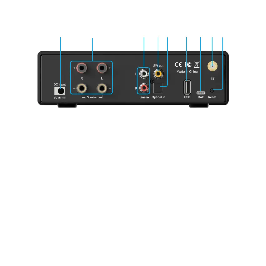 Reset button: When in Bluetooth Receiver mode, press twice to disconnect all Bluetooth connections.