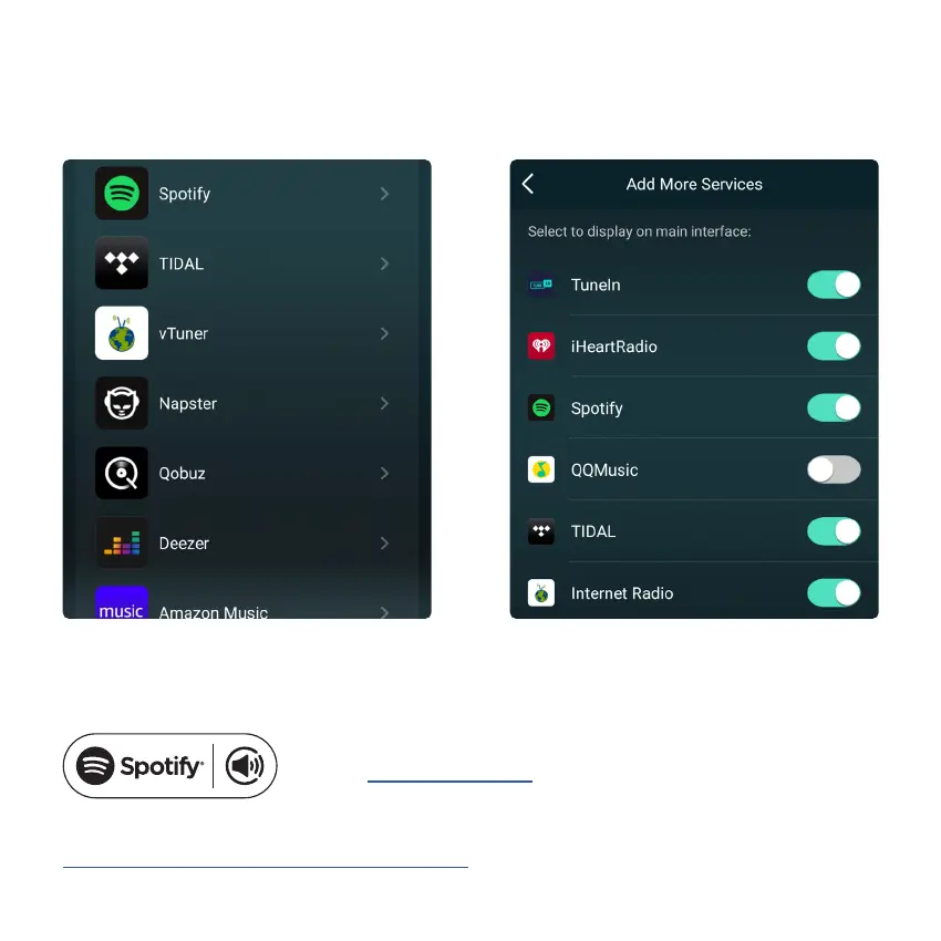 To use the online streaming services, iHeartRadio, Spotify, Tidal, Qobuz and Deezer may need to register