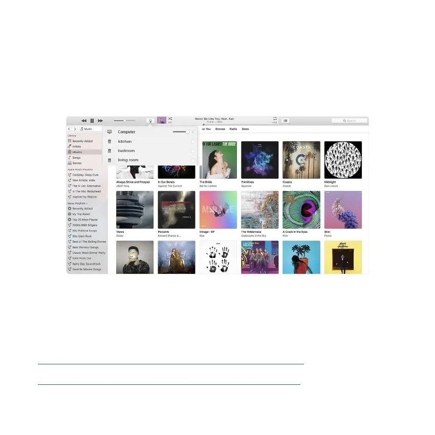 from iTunes. Users can easily play and switch music, control volume and choose the audio devices to group and