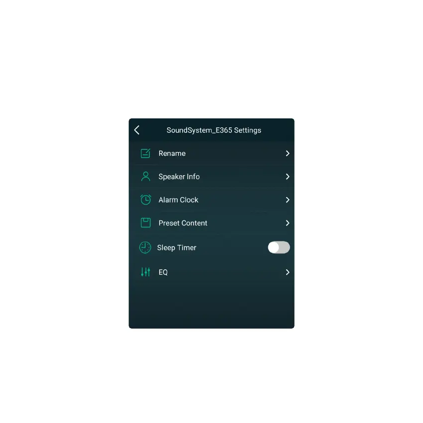 Speaker info: Display device information like IP address, Mac address, SSID, firmware version, factory reset,