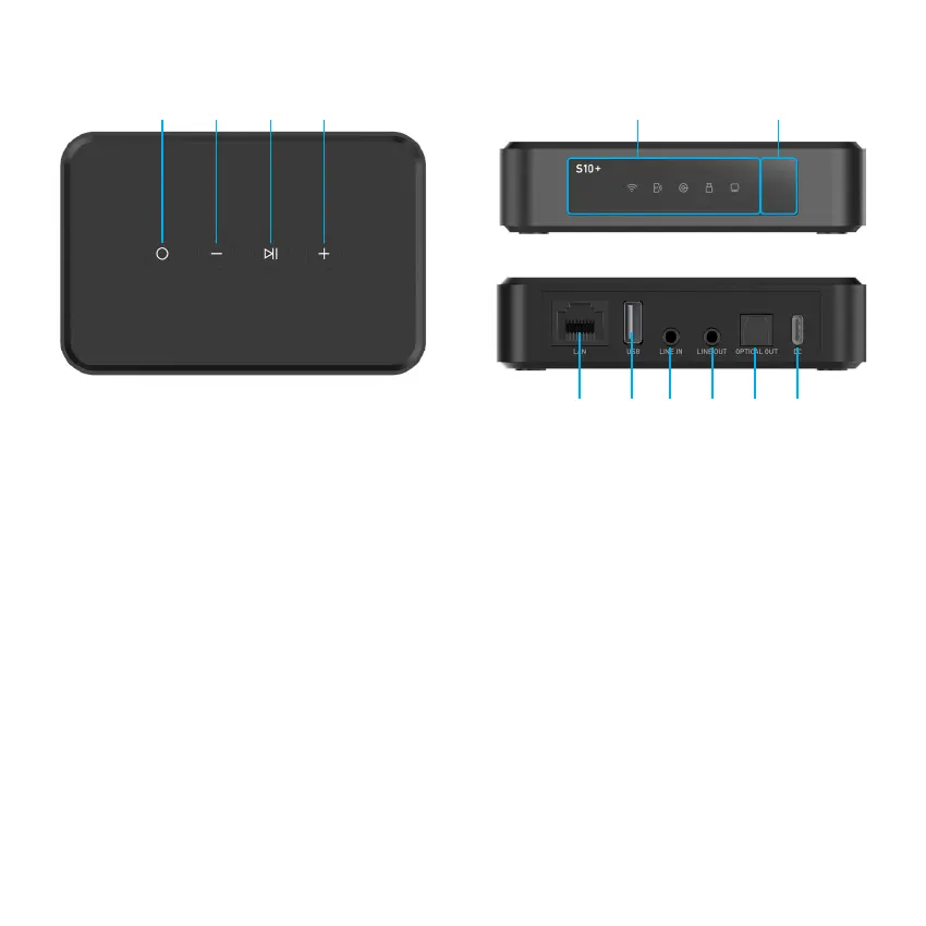 LED: Standby, WiFi mode, Bluetooth mode, Line in mode, USB mode, DAC mode