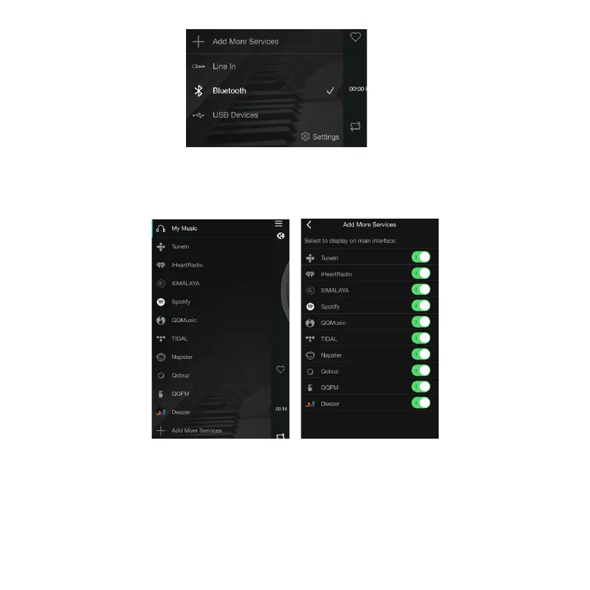 Um die Online-Streaming-Dienste nutzen zu können, müssen iHeartRadio, Spotify, Tidal, Qobuz und
