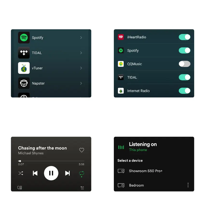 To use the online streaming services, iHeartRadio, Spotify, Tidal, Qobuz and Deezer may need to register account at the
