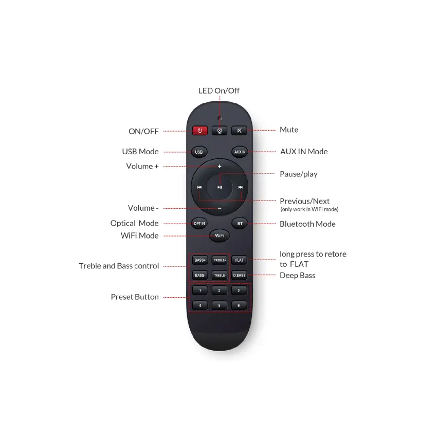 Arylic S50 Pro+ - Remote Controller Functions