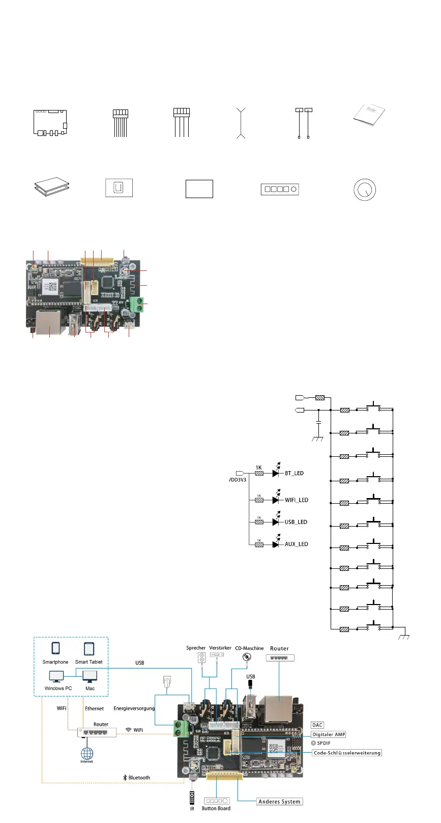 Es unterstützt auch Multiroom- und Multizone-Steuerung sowie Musikwiedergabe. Diese Empfängerplatine eignet sich perfekt für den Bau eines