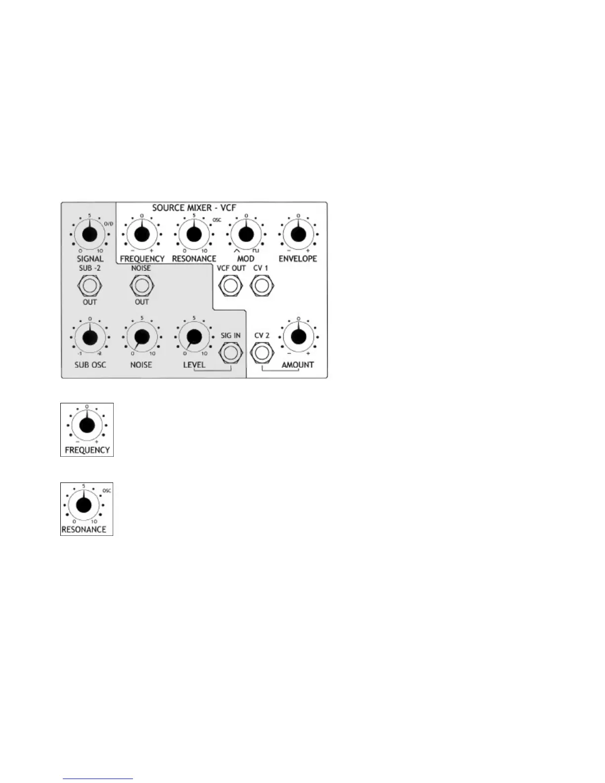 The Frequency knob (full name cut-off frequency) controls the point at which attenuation begins. Frequencies
