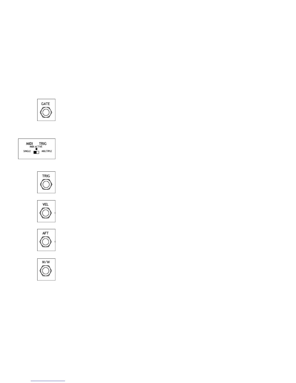 This socket provides the output for the midi generated trigger when a key is pressed on the Midi keyboard a