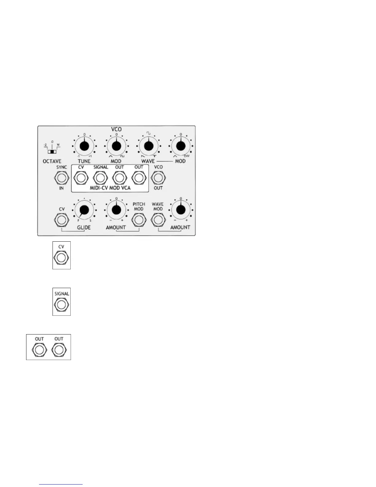 the CV this variable level control waveform available at the out socket could then be used to modulate a VCO or VCF.