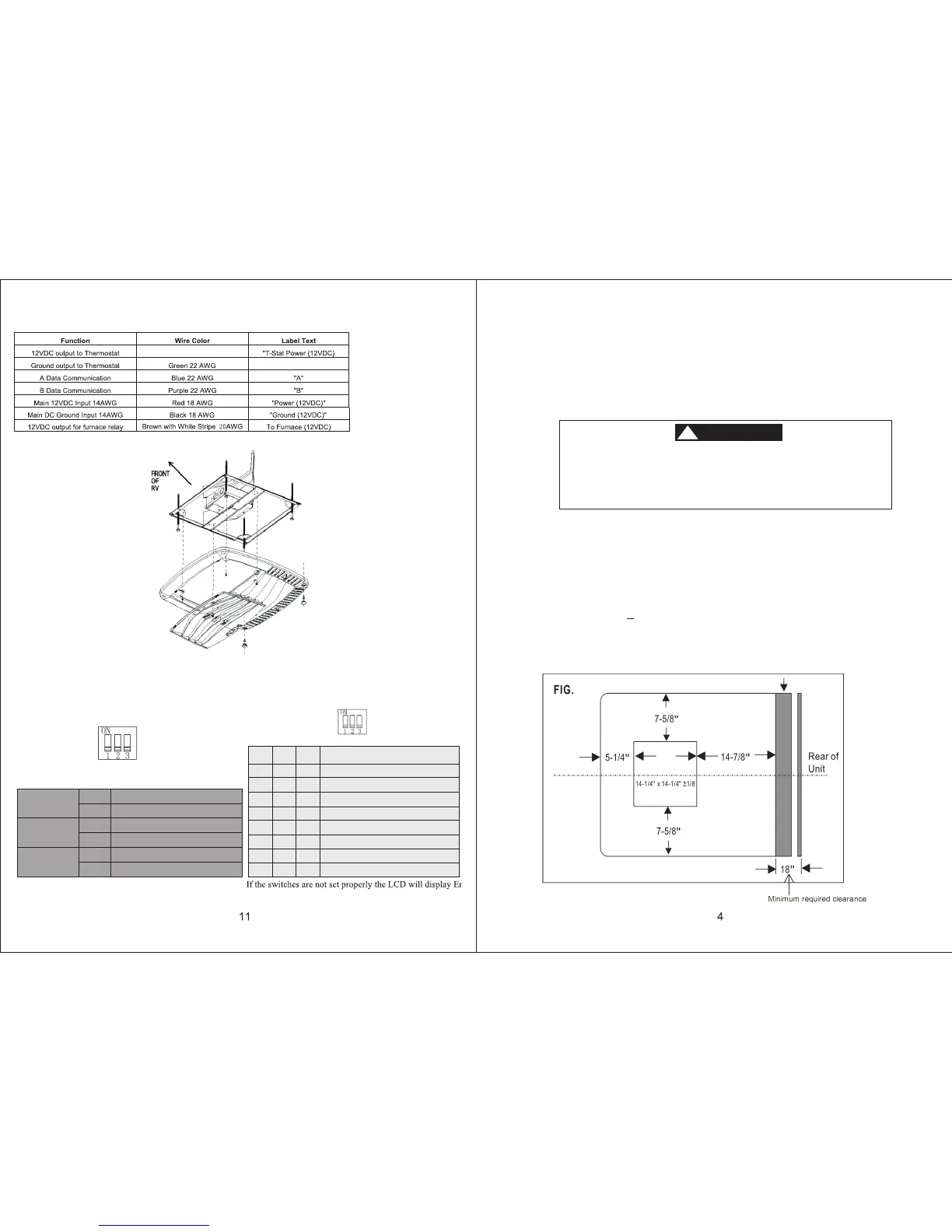 THERMOSTAT DIP SWITCH SETTINGS: