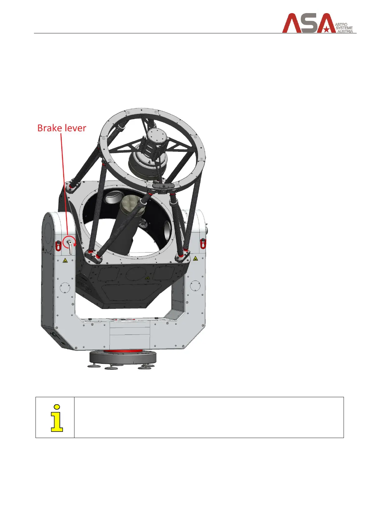 For Setup or maintenance purposes you can fix the elevation axis by tightening the elevation axis brake.