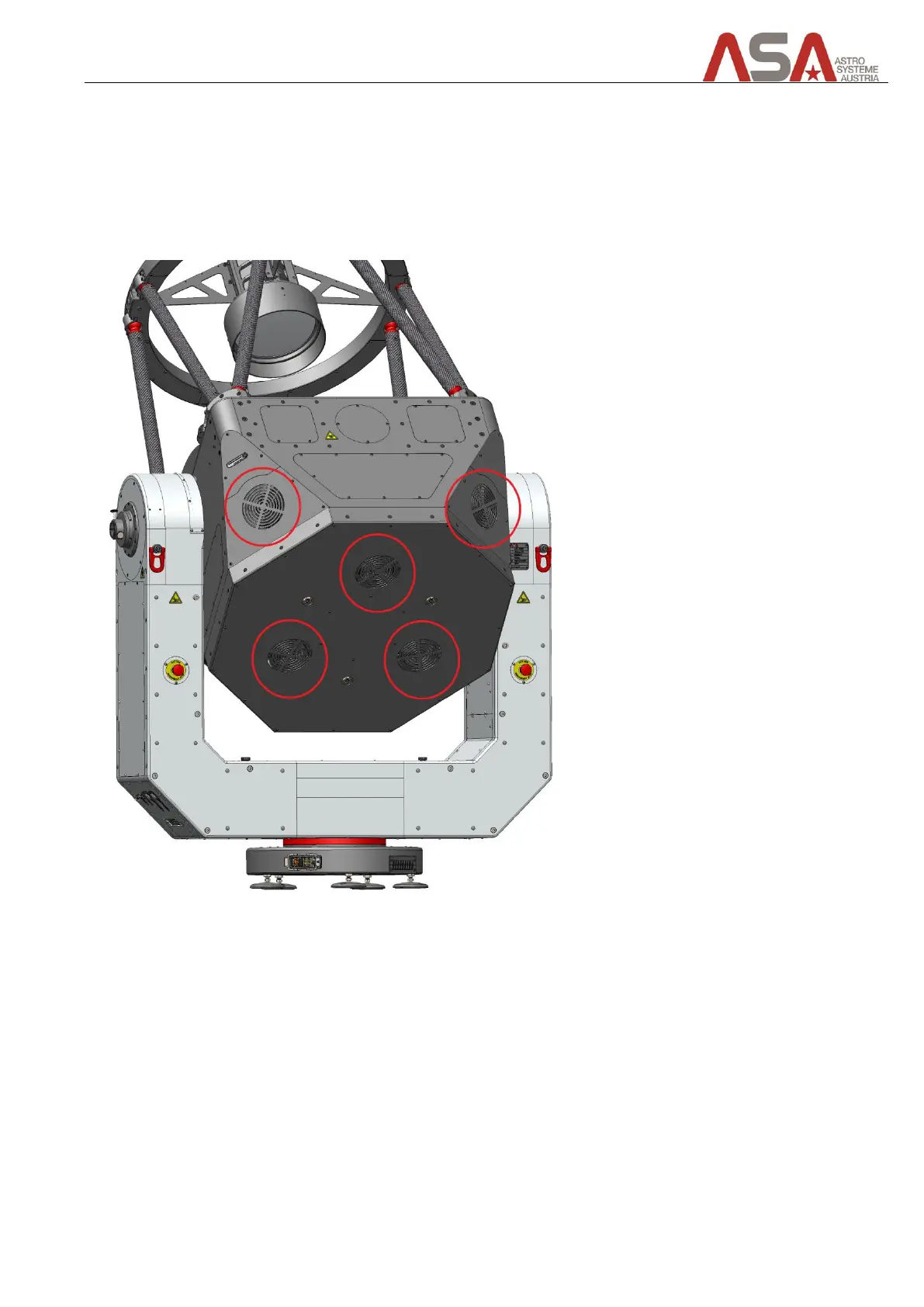 There are 7 120mm fans installed in the telescope. 3 of them blow air onto the back side of the primary mirror