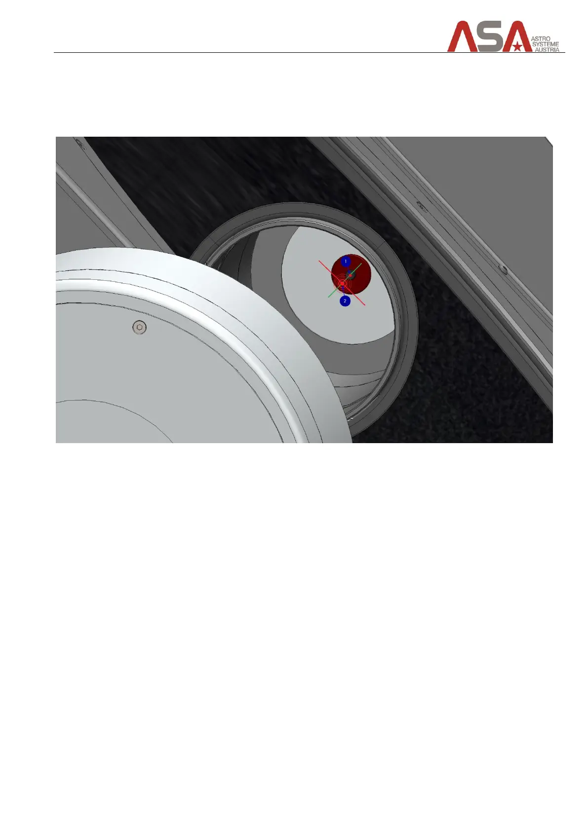 point (2) is in one line (green line in picture) with the laser origin (1). The red line in the picture shows how the
